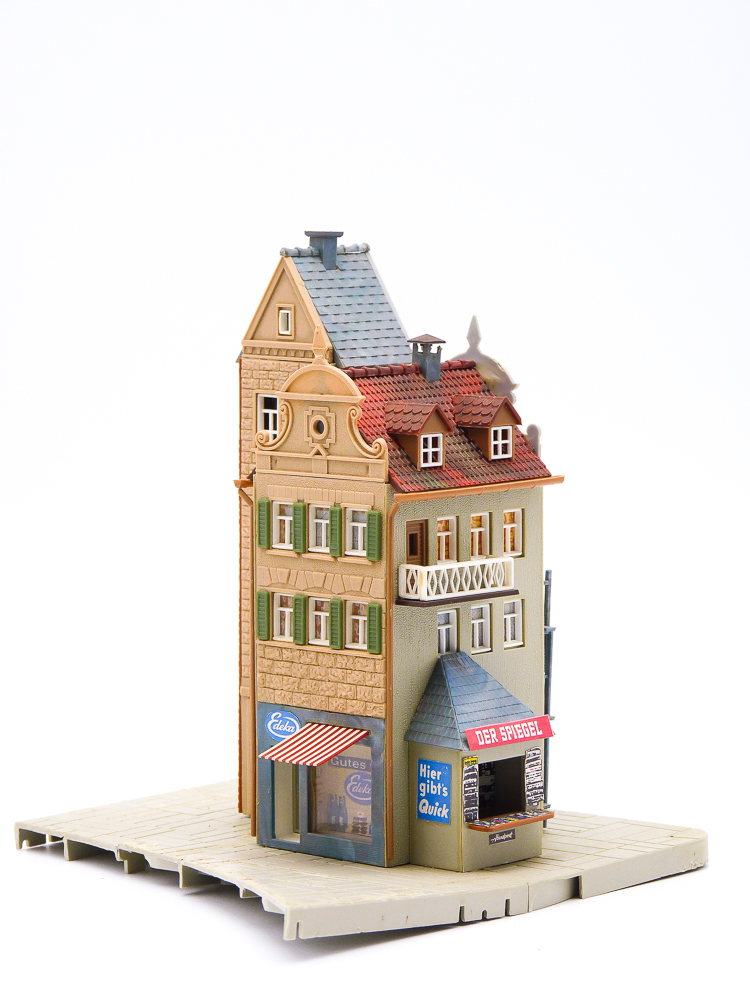 Stadshuis met winkel en kiosk