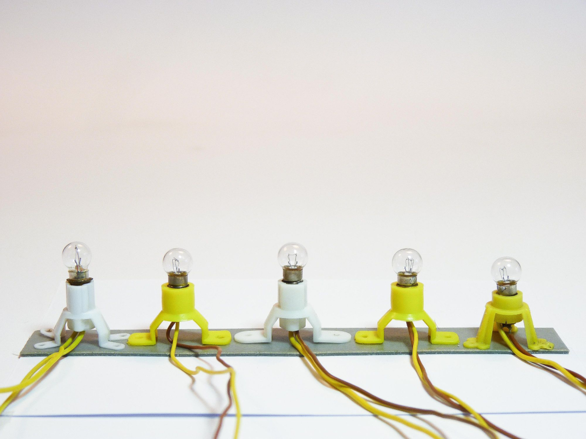 5 Fittingen met lampjes voor verlichting van huisjes.