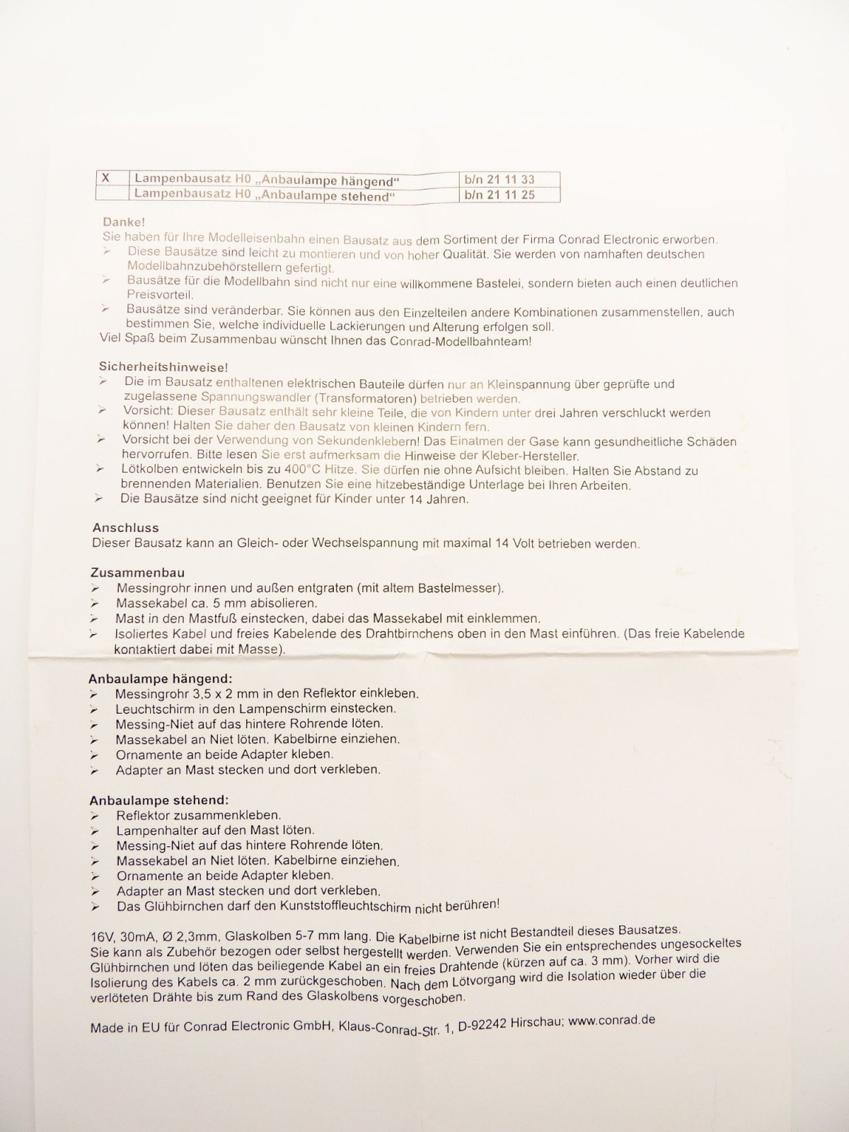 Lamp niet in dit pakket inbegrepen (zie handleiding voor bestelnummer).